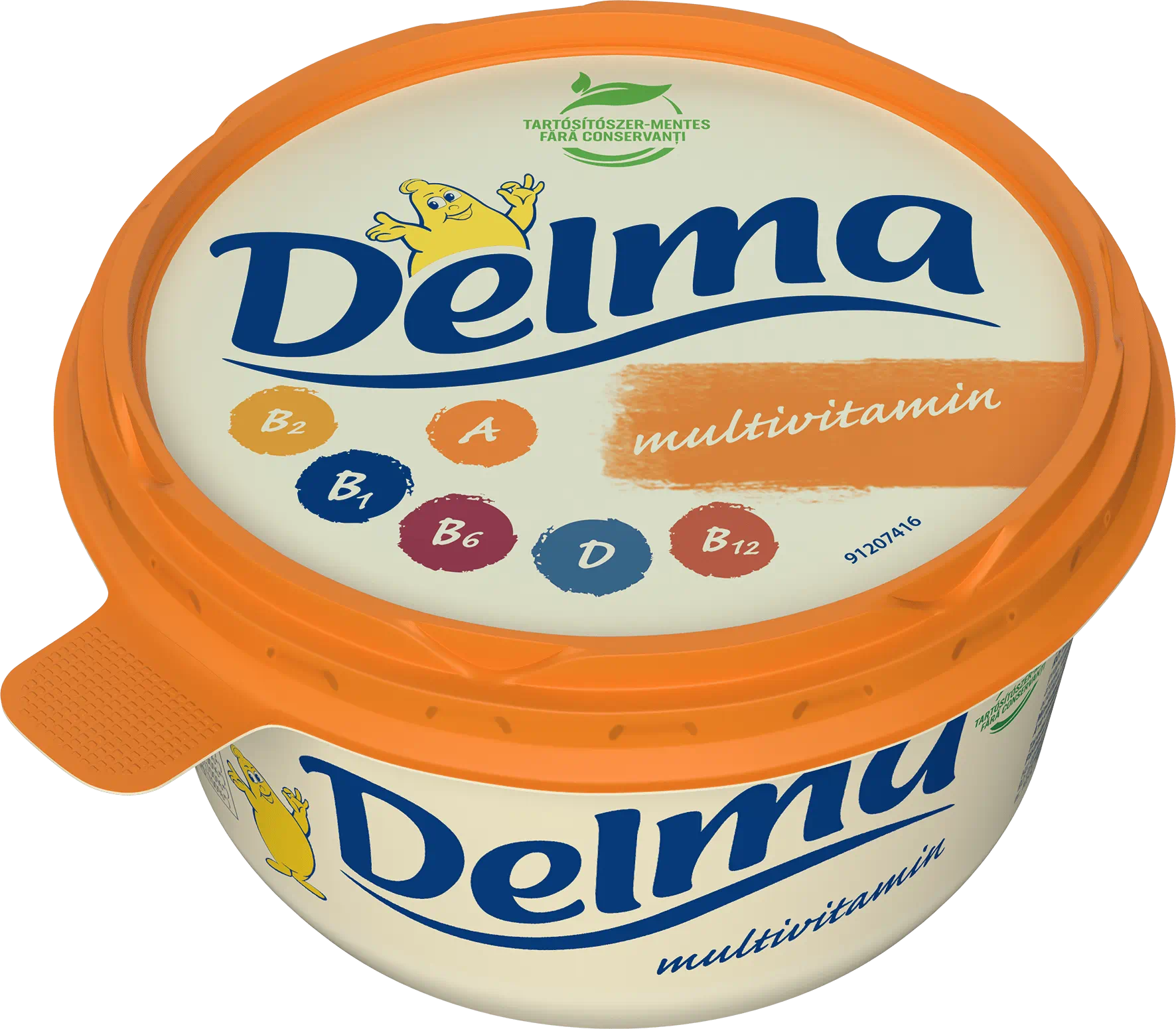 A Delma multivitamin margarin a megszokott finom ízvilág mellett vitamin tartalmával járul hozzá az egészségesebb élethez. A Delma vitaminokkal az egész család számára jó döntés.